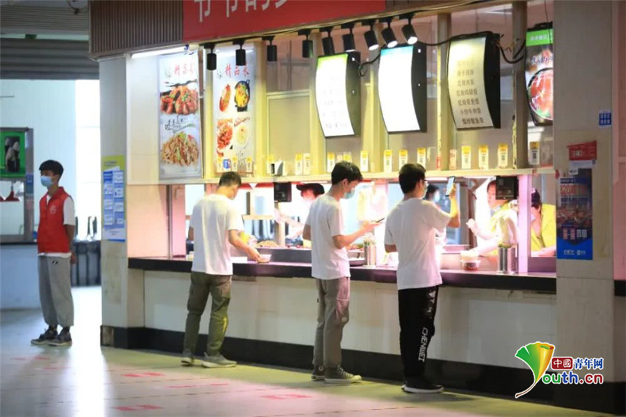 学生在食堂取餐。黄愈 摄