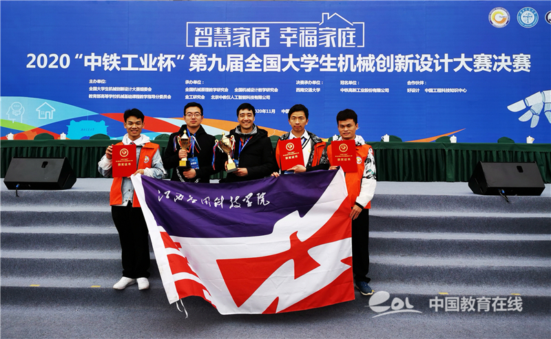 中国教育在线讯 11月21—22日,“中铁工业杯”第九届全国大学生机械创新设计大赛决赛在西南交通大学举行,全国100多所高校的优秀学子在决赛现场“秀”出了他们的创新力。江西应用科技学院的参赛作品《智慧阳台系统》获全国一等奖,参赛作品《智能坐便装置》获全国二等奖。