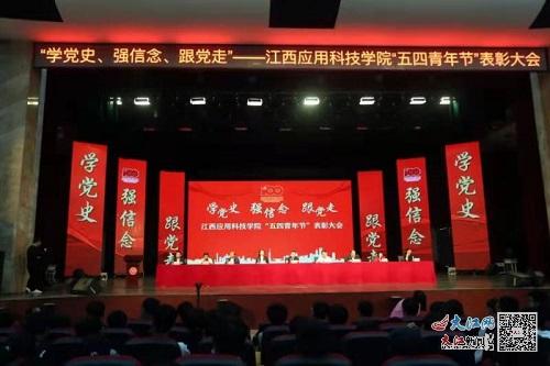 大江网/大江新闻客户端讯刘金报道:为扎实开展好党史学习教育,进一步表彰先进,树立典型,不断加强团学组织队伍的先进性建设,近日,江西应用科技学院在学校音乐厅举办“学党史,强信念,跟党走”五四青年节表彰大会。