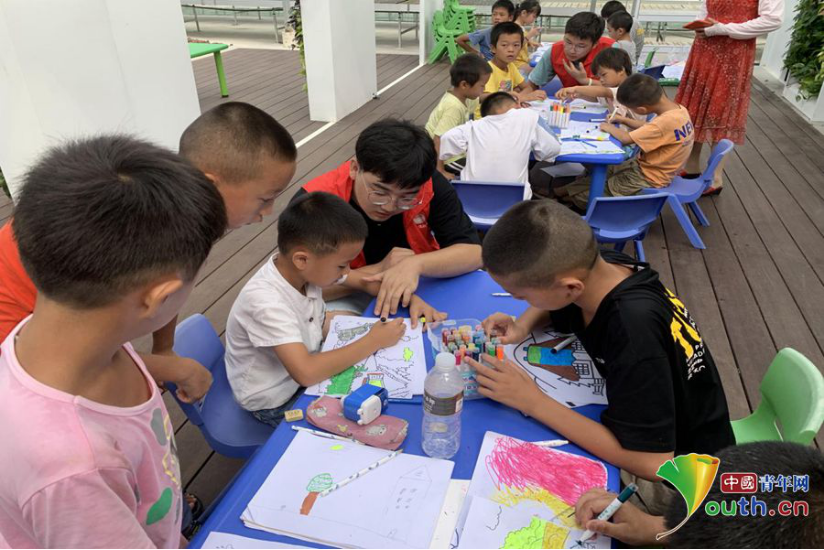 志愿者们指导孩子们画画。刘金 摄