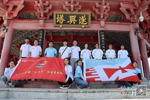 “红塔临空虚,雄观压江泽。亭亭楚云外,千里看不隔”。在遂川新景——红塔公园,实践队员们从记载着遂川历史事件的登山步道台阶上登塔俯瞰,感受欣赏“红塔楼前千顷稻,青山门外百家村”的壮丽景色。古时红塔为防治水患,扼守遂川江要塞而建,如今红塔为铭记抗战历史,缅怀革命先烈,弘扬跨越时空的井冈山精神而屹立。红塔源于远史,重建于当代,既目睹了昔日的沧桑,也见证着当下之辉煌,是品位遂川厚重文化的一扇窗口。
