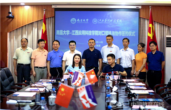 中国教育在线讯 为深化校校合作,提高人才培养质量,加强江西应用科技学院学科专业建设、科研服务能力和项目建设成果推广,7月16日下午,南昌大学与江西应用科技学院对口帮扶与协作协议签约仪式在江西应用科技学院图书馆四楼会议室举行。仪式上,两校成功签订对口帮扶与协作协议。省委教育工委委员、省教育厅副厅长刘小强,南昌大学副校长刘耀彬以及江西应用科技学院董事长黄玉林,党委书记彭迪云,校长黄士安,常务副校长干甜,党委副书记席芳宽等出席签约仪式。签约仪式由黄士安主持。