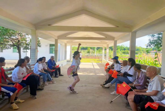 实践队队员们走进敬老院中,与老人们亲切地交谈,给他们捶背按摩,表演才艺,缓解他们的劳累和孤寂。实践团成员们为老人讲了红色经典故事、唱了红歌、跳了红色舞蹈《映山红》、为每位老人单独摄影,并前往镇上将照片打印过塑,赠予老人作为纪念。活动最后送别之时,每位老人脸上洋溢着幸福又带点不舍的笑容,是实践团成员们最大的收获。
