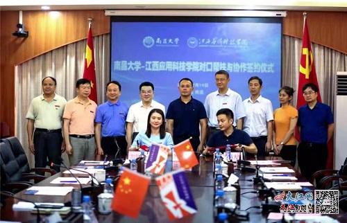 大江网/大江新闻客户端讯 为深化校校合作,提高人才培养质量,加强江西应用科技学院学科专业建设、科研服务能力和项目建设成果推广,7月16日下午,南昌大学与江西应用科技学院对口帮扶与协作协议签约仪式在江西应用科技学院图书馆四楼会议室举行。仪式上,两校成功签订对口帮扶与协作协议。省委教育工委委员、省教育厅副厅长刘小强,南昌大学副校长刘耀彬以及江西应用科技学院董事长黄玉林,党委书记彭迪云,校长黄士安,常务副校长干甜,党委副书记席芳宽等出席签约仪式。签约仪式由黄士安主持。