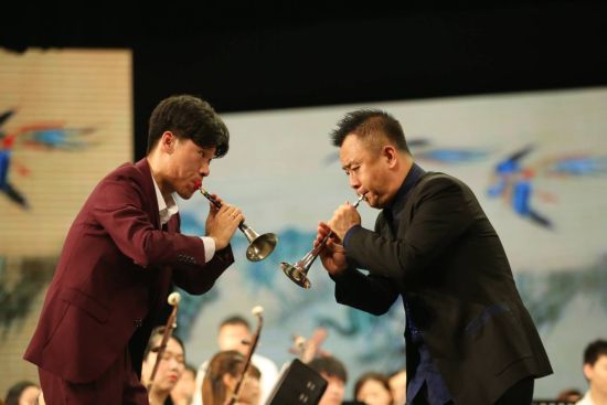 著名唢呐演奏家、国家一级演员牛建党与学生合奏唢呐曲《百鸟朝凤》