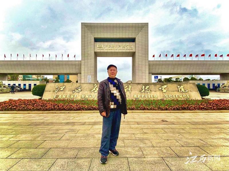 ▲本文作者在江西应用科技学院校门前留影。摄影|熊家明