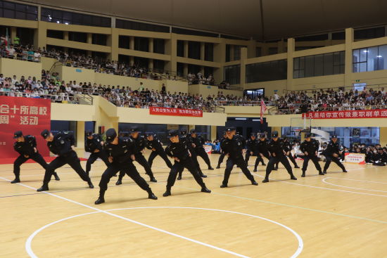 仪式现场进行了形式多样、内容丰富的反诈文艺表演。开场舞蹈《无诈之姐》、特警《擒敌拳表演》、小品《一墙之隔》、快板《防范诈骗有高招》、改编的rap歌曲《反诈Disco》等,节目主题突出、内容精彩纷呈。穿插的反诈知识宣讲,民警针对兼职刷单、网购退款、“杀猪盘”等电信网络诈骗案件的作案手法和防范技巧进行了讲解,并提醒同学们切勿将个人银行账户、社交账号等个人信息租借给他人使用。还精心设计了一些特定情景的题目进行抢答,同学们争先恐后、踊跃答题,现场互动活跃。最后,在主持人的带动下,全场共同再次宣读反诈口号“不听、不信、不转账、不参与”,一起将本次活动推向高潮。