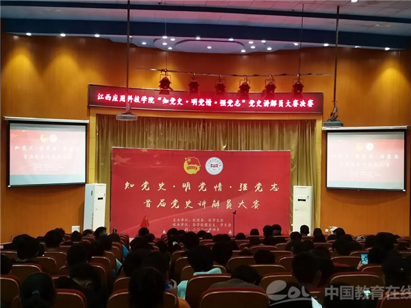 中国教育在线讯 为推动党史学习教育深入师生、深入人心,江西应用科技学院各学院积极开展“党史讲解员”“红色故事汇”“党史学习教育宣讲团”“喜迎建党百年书法展”“主题团日”等相关活动,扎实推进党史学习教育,重温百年光辉历程,从党的奋斗征程中汲取智慧,在深学细悟笃行中开辟新局,为建党一百周年献礼。