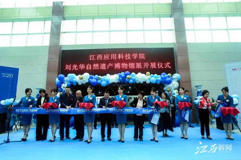 江西新闻客户端讯 5月20日上午,江西应用科技学院光华宝石矿物资源学院刘光华自然遗产博物馆展在学校图书馆一楼举行开展仪式。