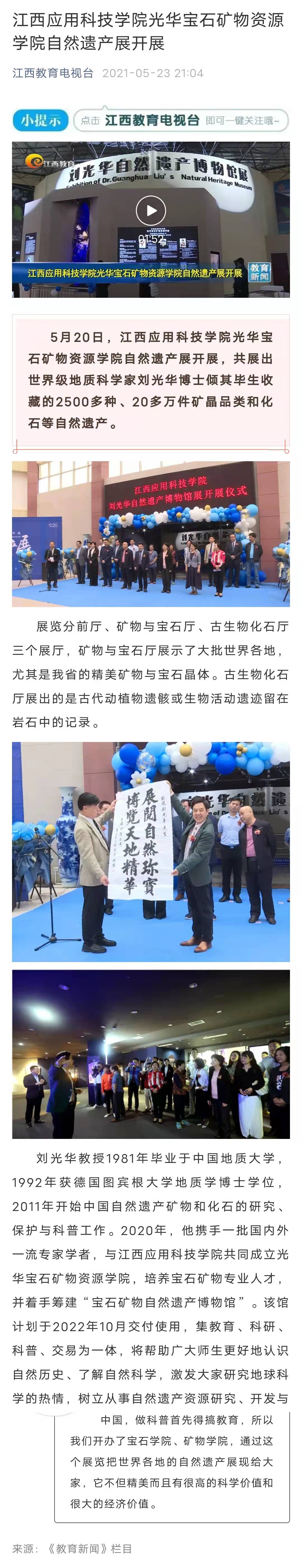 上一条:【手机江西台】南昌:饱眼福 涨知识——刘光华自然遗产博物馆展启幕 下一条:【中国青年网】江西应用科技学院光华宝石矿物资源学院自然遗产展开展