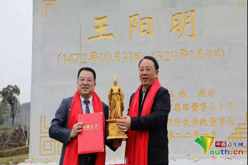 中国青年网赣州1月3日电1月1日,江西省赣州市崇义县举行王阳明雕像落成典礼。崇义县委书记李国泉,辰林教育集团董事局主席、CEO、总裁,江西应用科技学院董事长黄玉林出席并为阳明雕像揭幕。