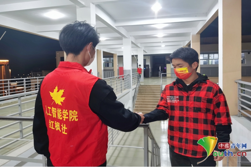 “我是党员!我先上!”在该校人工智能学院发出志愿者招募后,全院师生踊跃报名,参与到疫情联防联控志愿服务中。从教学楼到学生公寓,处处都是人工智能学院志愿者的身影,环境消毒、体温监测、信息登记、防疫提示……志愿者们的服务细致入微,充分践行着“奉献、友爱、互助、进步”的志愿精神。