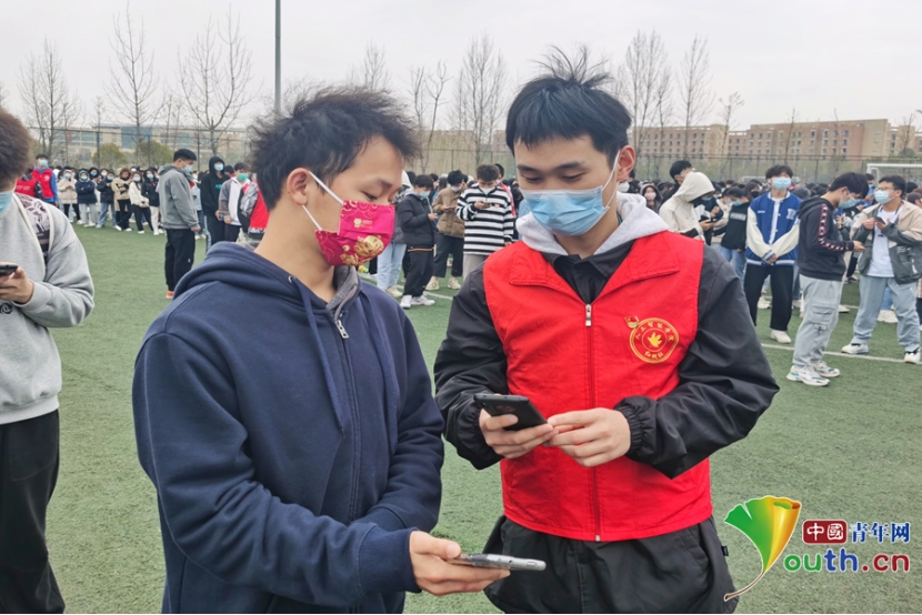 志愿者对来做核酸的学生进行身份核验。刘金 摄