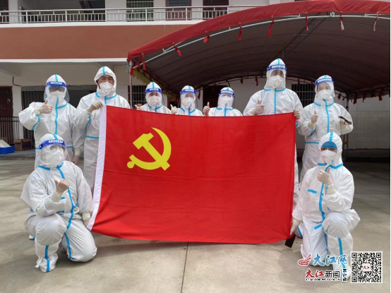 大江网/大江新闻客户端讯 凌勇报道:疫情就是命令,防控就是责任。2022年3月24日,江西应用科技学院在保障完成学校近两万人的核酸检测的情况下,接到属地政府新建区石埠镇请求支援的紧急商请,学校党委、行政领导高度重视,以高度的政治站位,第一时间抽调精干力量,组建“江西应用科技学院党员突击队”,协助组织核酸检测,配合南昌市从快从速打赢突发疫情“围剿清零”攻坚战。