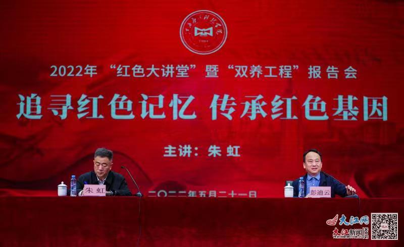 5月21日下午,为了强化用红色资源铸魂育人,深化“教师养德修为工程”和“学生素质养成教育工程”建设,江西应用科技学院在学校音乐厅举行“红色大讲堂”暨“双养工程”报告会,南昌大学教授、博士生导师朱虹受邀作《追寻红色记忆 传承红色基因》专题报告。报告会采用线下与线上直播方式同时进行。部分师生代表到场聆听,董事长黄玉林,校长黄士安等全体校领导出席。报告会由党委书记彭迪云主持。