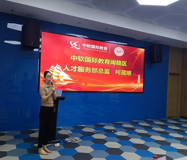 按照中软国际接收实习学生的入营式安排,15日上午9:30,在芯云谷2号楼三楼会议举行开班仪式,全体实习学生和校企双方教师参加入营式。入营式由中软国际实习基地实习班级辅导员周彤苗主持,中软国际教育科技集团闽赣区人才服务部总监柯葳娜、专任老师陈鑫源分别发言讲话。