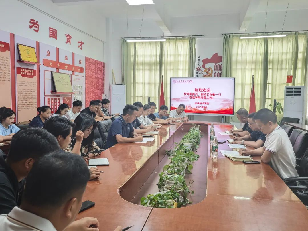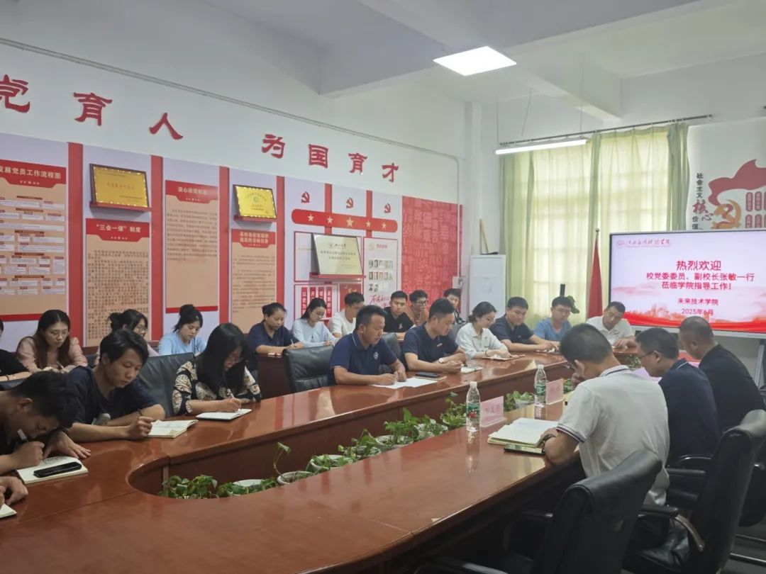 2025年6月9日,校党委委员、副校长张敏一行莅临未来技术学院调研指导工作。此次调研聚焦学院征兵工作,深入交流、精准施策,助力学院征兵工作再上新台阶。学院党总支书记卢胜勇,学工科副科长王冰以及全体专兼职辅导员参加座谈会,会议由学院党总支书记卢胜勇主持。