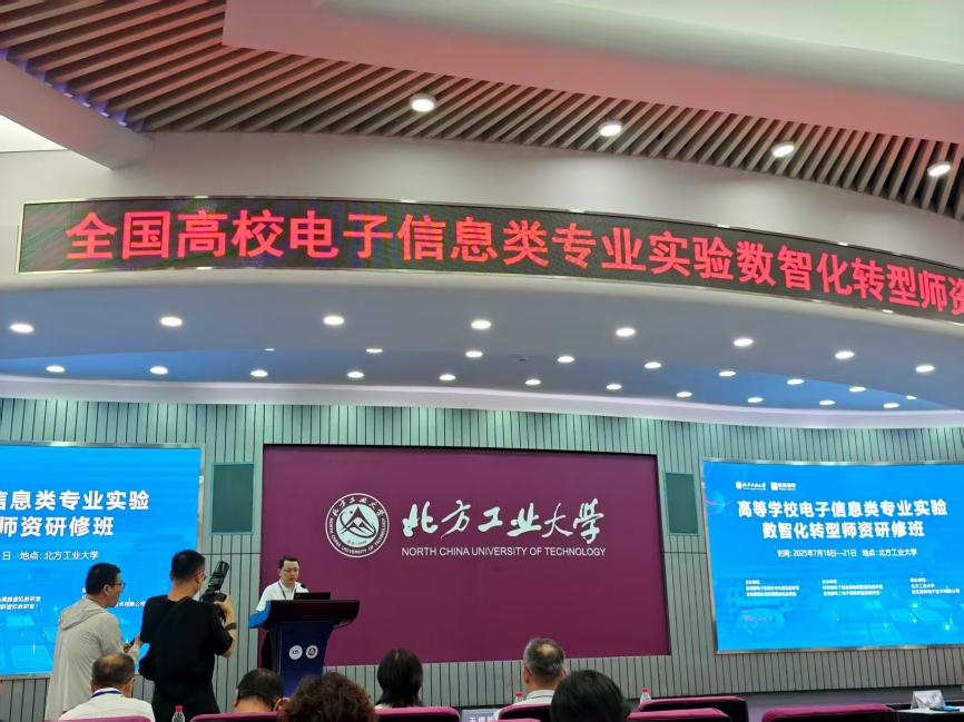 为深入贯彻落实教育部关于“以数字教育改变学生的学,以数字赋能改变教师的教,以教育数字化为引领,重塑教育教学新生态”的相关要求,推动实验实践数智化转型,加快培养适应数字经济时代需求的高素质应用型人才,2025年7月18日至21日,由教育部电子信息类专业虚拟教研室与通信原理课程虚拟教研室主办,电子信息基础课程虚拟教研室与电工电子课程群虚拟教研室协办,北方工业大学与武汉凌特电子技术有限公司承办的“高等学校电子信息类专业教师实验数智化转型实践研修班”在北京顺利举行。