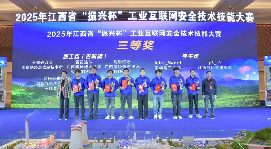 近日,2025 年江西省 “振兴杯” 工业互联网安全技术技能大赛在萍乡落幕。本次大赛由多部门联合主办,是省内工业互联网安全领域权威赛事,吸引全省 300 余支队伍参赛,最终 17 支队伍晋级决赛。江西应用科技学院 P3_t0 代表队凭借扎实功底斩获学生组三等奖。