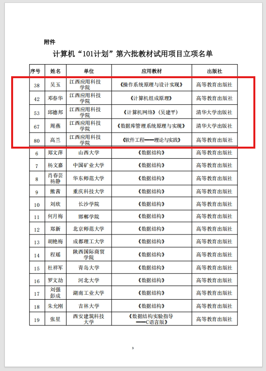 近日,教育部计算机领域本科教育教学改革试点工作办公室公布第六批教材试点应用项目立项名单,未来技术学院申报的《计算机网络》、《计算机组成原理》、《操作系统》、《数据库原理及其应用》、《软件工程》获批立项,标志着学院在计算机领域教学改革与教材建设方面取得重大突破。