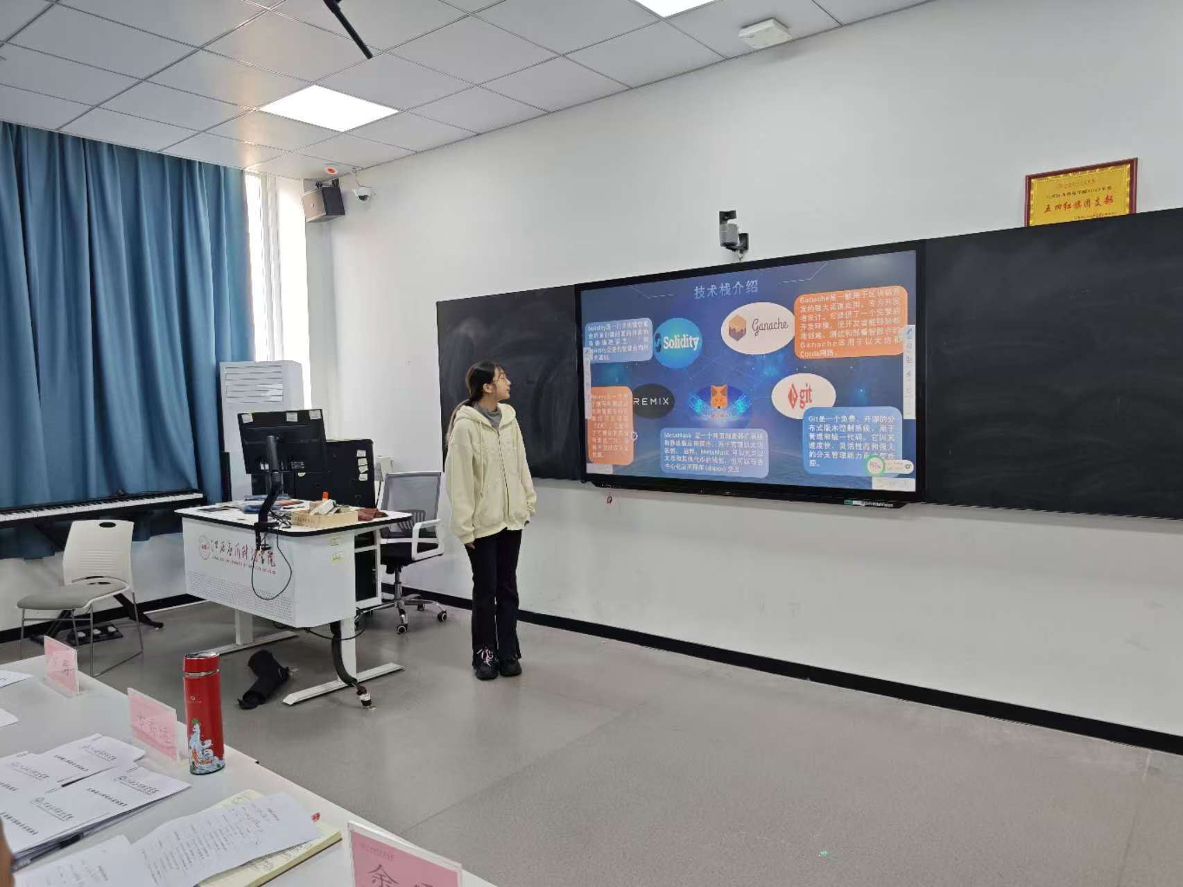 汇报会于上午10:00准时开始。学生们以PPT形式汇报了他们的区块链项目,展示了项目实现过程及成果,并进行了源码展示和项目运行演示。学生们不仅详细介绍了团队成员分工,强调了团队合作的重要性,还清晰地阐述了项目的主题和目的,论证了他们的论点。评委老师们对每个项目进行了细致的评估,并填写了《区块链项目成果评分表》。