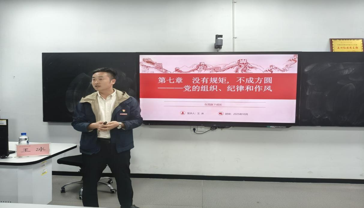 在纪律与作风建设部分,王冰老师重点解读了政治纪律、组织纪律等六大纪律的核心要求,明确了警告、开除党籍等纪律处分的适用情形,重申了理论联系实际、密切联系群众、批评和自我批评的党的三大优良作风。