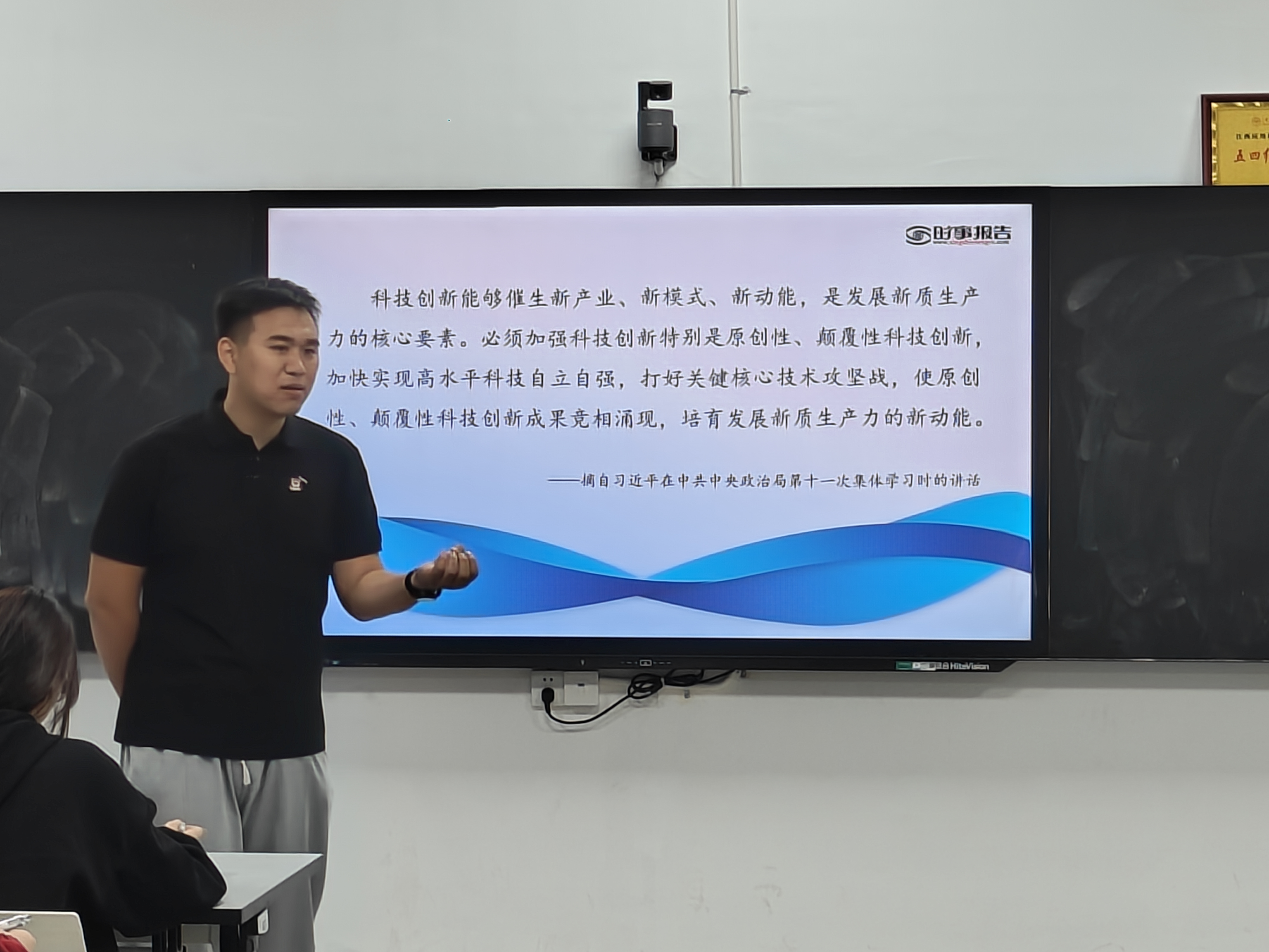 课上,何锦老师指出,当今世界科技竞争日趋白热化,科技创新的广度正显著加大,速度显著加快,技术迭代周期不断缩短,深度持续加深,基础研究与应用研究加速融合。面对这样的时与势,我国唯有坚定向前,将科技自立自强作为国家发展的战略支撑,才能在国际竞争中掌握主动权。