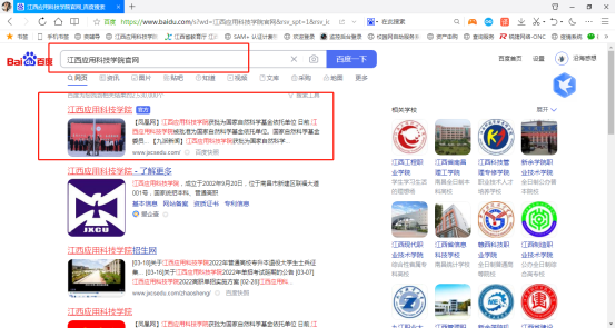 1.打开浏览器搜索“江西应用科技学院官网”后点击链接进入。