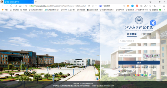 5.可点击此处(江西应用科技学院统一身份认证平台)超链接跳转。