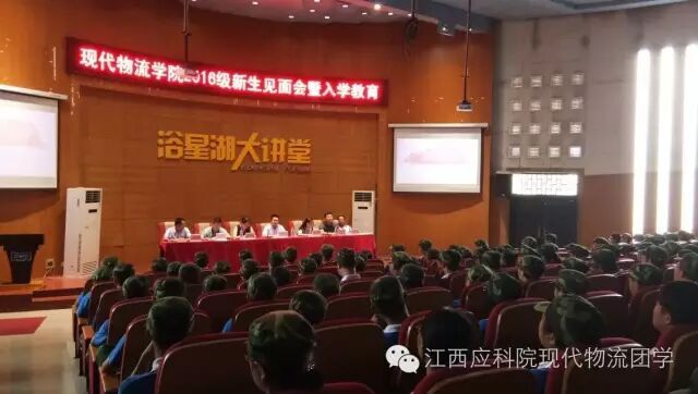 现代物流学院于2016年9月9日上午9时,在浴星湖大讲堂开展2016级新生见面会暨入学教育第一堂课。出席本次活动有校长助理兼教务处长兼现代物流学院院长刘春斌、现代物流学院党总支书记刘海梅、现代物流学院副院长王慧、学工科长、团总支书记黎晓明、办公室主任黄继磊、教务科长郭明德、学生第二党支部书记卢胜勇等学院领导以及现代物流学院全体2016级新生。