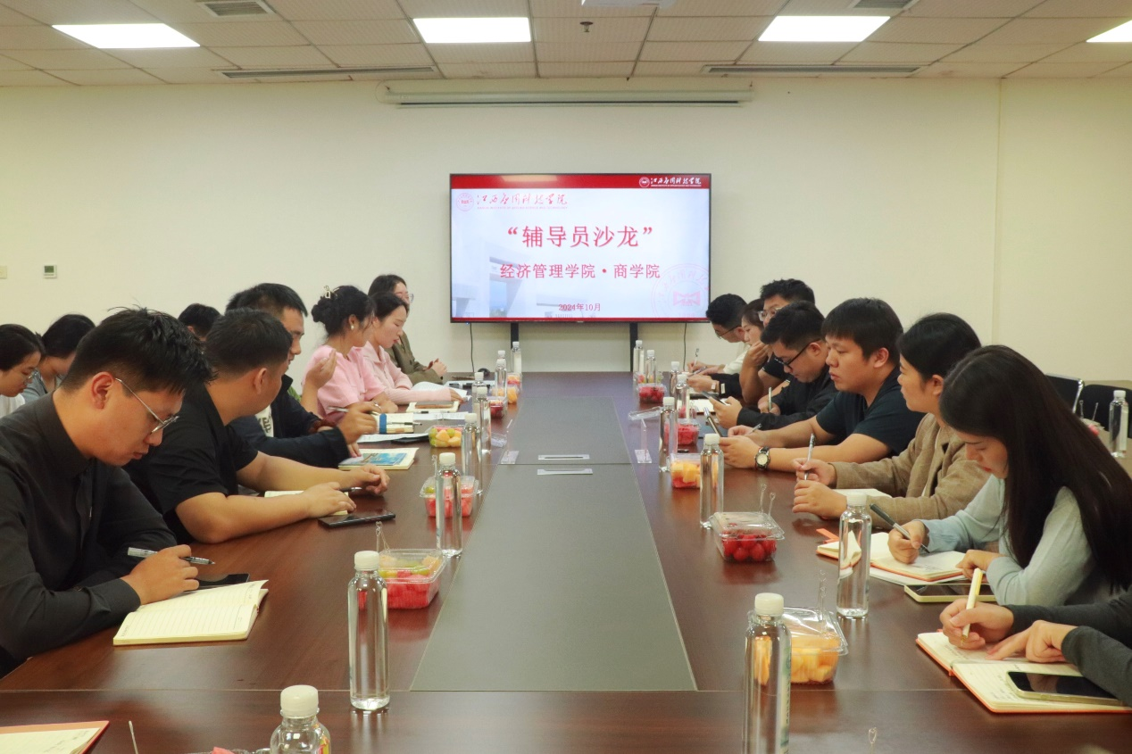 为了进一步推进大学生素质养成教育工作,促进学院间的工作交流,互相学习经验,经济管理学院和商学院联合开展大学生素质养成教育工程辅导员交流会。本次会议于2024年10月18日上午10时在综合楼305党员活动室召开,经济管理学院学工科科长苏秋月,商学院学工科科长程佳明以及两个学院全体辅导员老师出席本次会议。本次会议由经济管理学院汤淇茗主持。