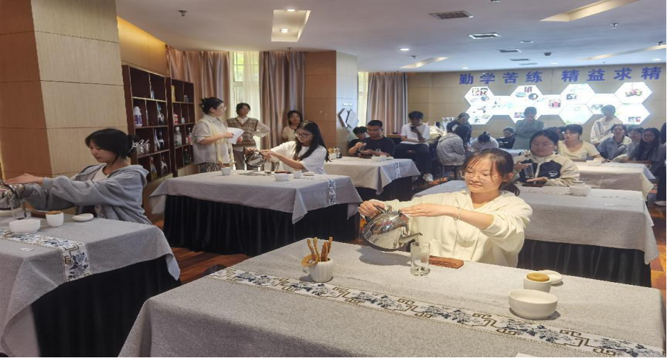 为提高师生专业技能水平,根据《“辰林杯”第十五届江西应用科技学院专业技能运动会实施方案》的总体安排,酒店管理专业于2024年10月10日下午在国际交流中心酒文化中心实训室举办了茶艺服务技能赛事初赛,担任本次初赛的评委老师有酒店管理专业带头人魏雅姝、专业负责人刘影、骨干教师周珊、傅凯林。