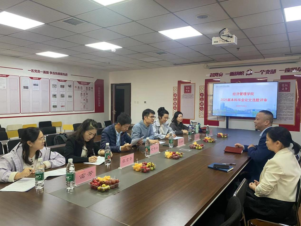 为做好本科毕业论文选题工作,进一步规范毕业论文选题工作的各项环节。11月5日下午,经济管理学院在综合楼3楼会议室组织召开了2025届经济管理学院本科毕业论文选题评审会。