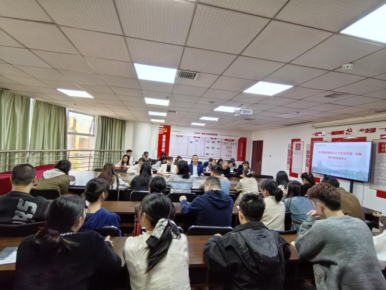 2024年10月31日下午,经济管理学院于综合楼305举办期中教师座谈会,院长樊立君、常务副院长揭志锋出席会议,会议由副院长漆圆方主持,各教研室主任、教务科全体成员及教师代表参会。