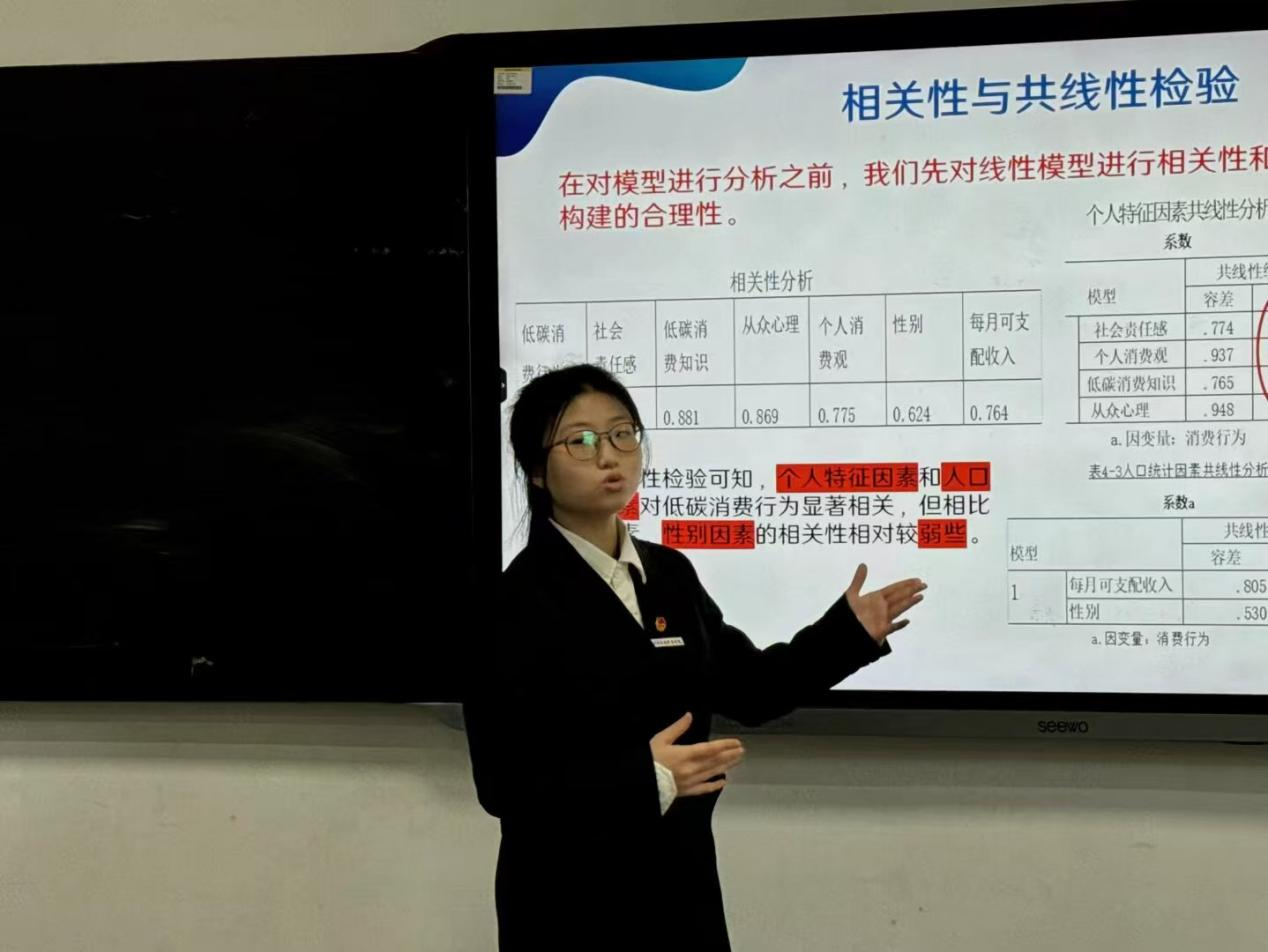本次赛事特邀9位校内外学者专家组成评审团,以“创新性、可行性、社会价值”三大维度构建评审体系。决赛现场,参赛团队聚焦“双碳”战略实施路径、新能源产业模式创新等热点议题,通过数据模型推演、技术分析等手段,呈现兼具学术深度与实践价值的创新方案。评审专家从理论严谨性、成果转化潜力、社会痛点契合度等角度进行综合考评,并现场提出优化建议。