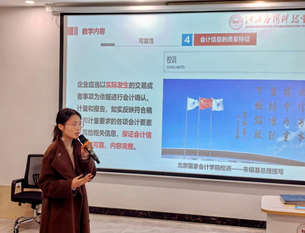 在课堂上,朱婵媛以会计信息质量特征为核心内容,巧妙地运用了一系列生动且贴近生活的案例分析,生动地进行了讲解,课堂氛围十分活跃,节奏安排紧凑有序。