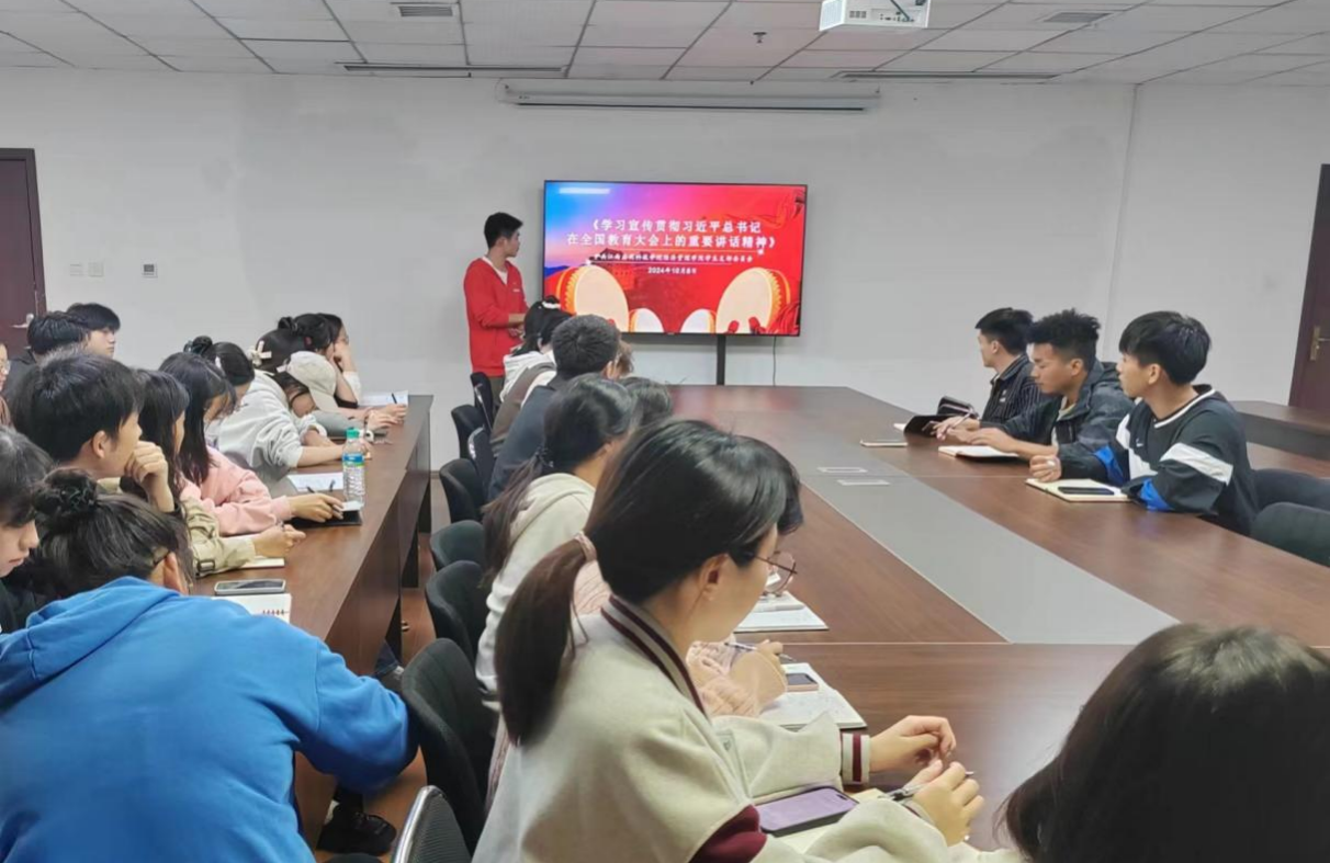 2024年10月8日,经济管理学院学生党支部在综合大楼305开展“学习宣传贯彻习近平总书记在全国教育大会上的重要讲话精神”专题学习会。