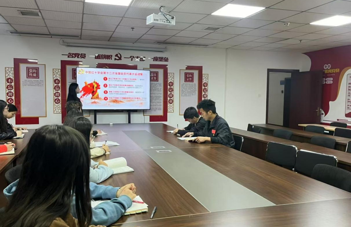 2024年11月5日,经济管理学院学生党支部于综合大楼305开展“学习贯彻习近平总书记致信精神和中国红十字会第十二次全国会员代表大会精神”专题学习会。