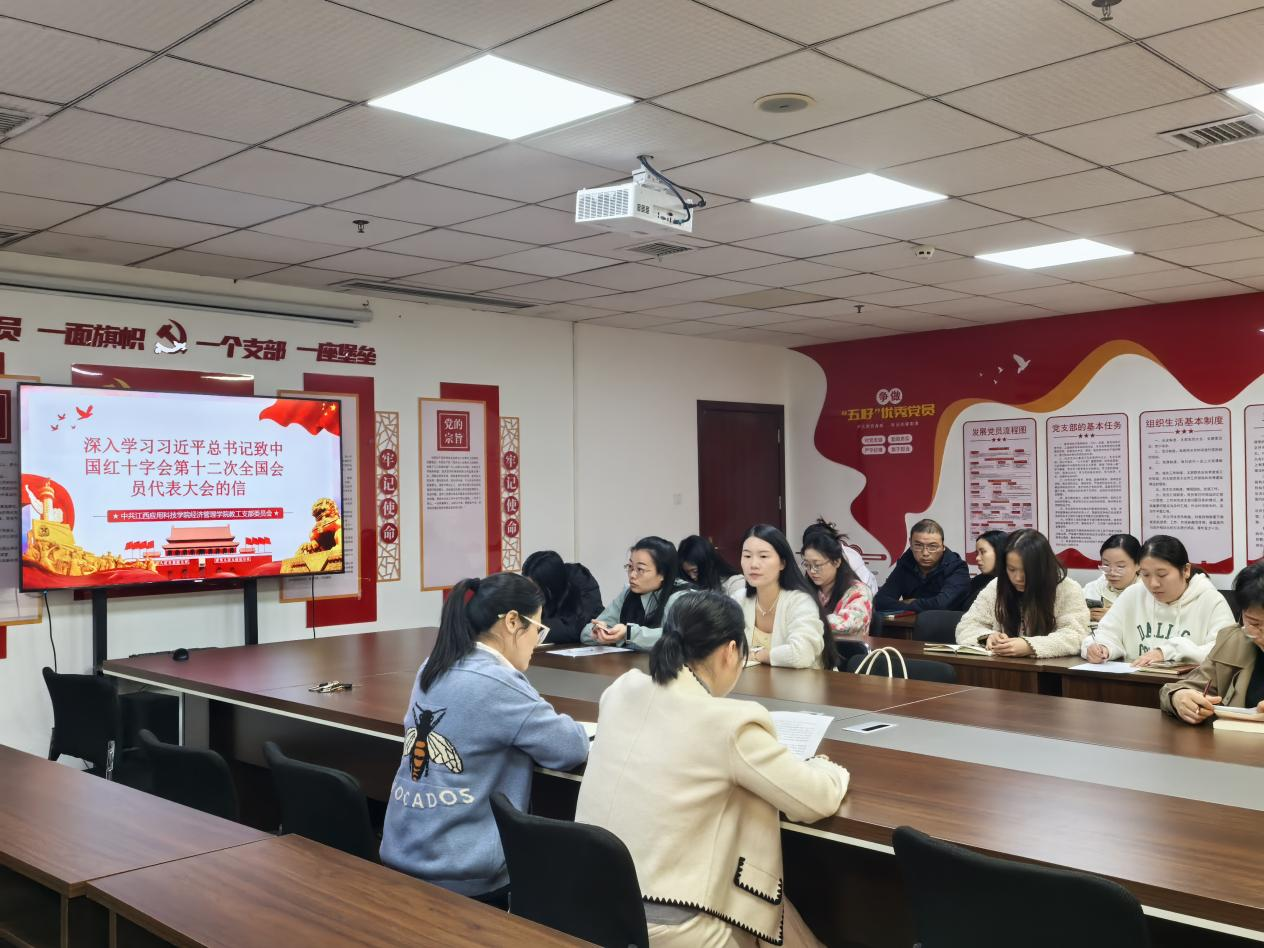 2024年11月13日,教工支部全体党员在综合楼305会议室开展深入学习习近平总书记致中国红十字会第十二次全国会员代表大会的信。本次会议由学院教工党支部书记漆圆方主持召开。