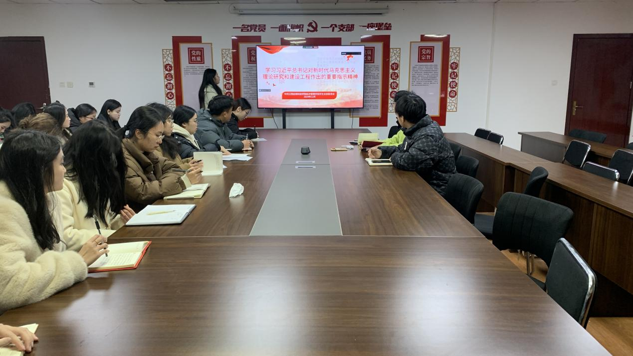 2024年12月17日,经济管理学院学生党支部于综合大楼305开展“学习习近平总书记对新时代马克思主义理论研究和建设工程作出重要指示精神”专题学习会。