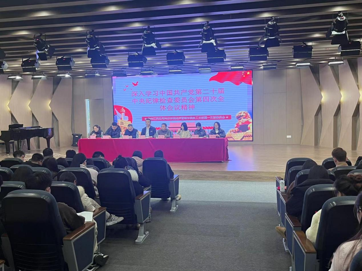 2025年2月19日,经济管理学院教工第一党支部全体党员在行知楼音乐厅开展深入学习中国共产党第二十届中央纪律检查委员会第四次全体会议精神。经济管理学院党总支书记王飞参加本次会议,会议由学院教工第一党支部书记漆圆方主持召开。
