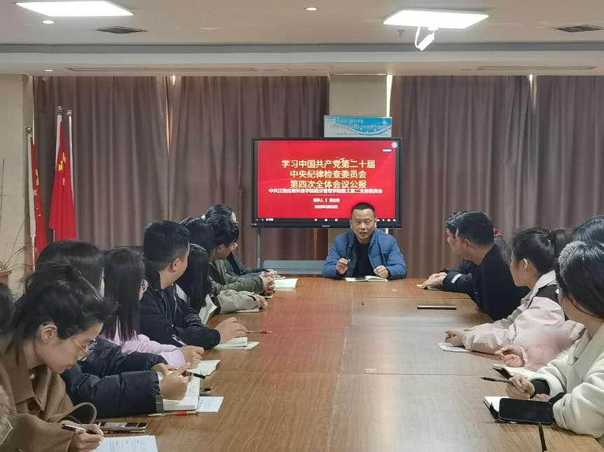 2025年2月22日,经济管理学院教工第二党支部于综合大楼305开展“中国共产党第二十届中央纪律检查委员会第四次全体会议公报”的学习活动。