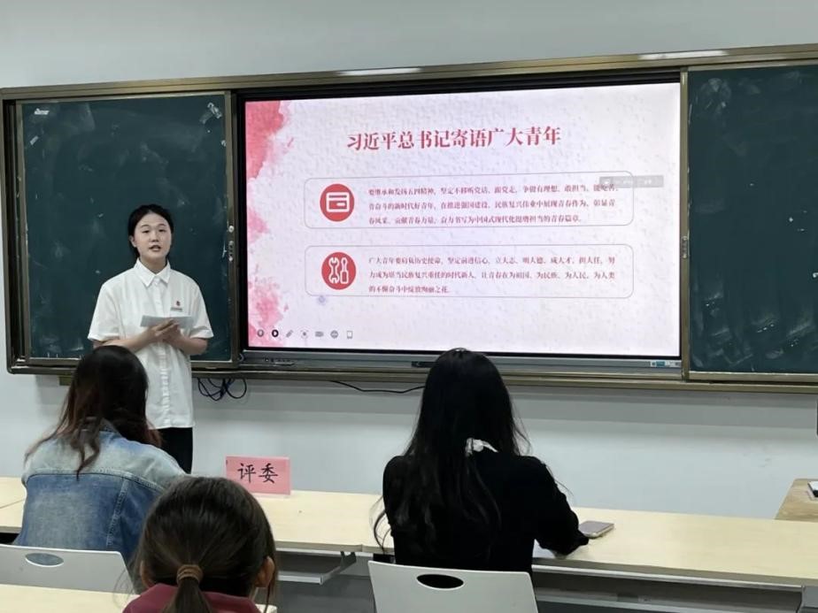 展示者们紧扣“理想信念教育”“爱国主义教育”“道德品行教育”“团员意识教育”四个模块聚焦时事焦点、红色记忆、青年的使命与奉献等维度展开阐述,巧妙融合PPT展示、实例剖析、多媒体素材等多元化手段,巧妙地将个人教学心得与所学专业知识融入大学生思想政治教育之中,或是以亲身经历、日常点滴、动人故事为媒介,传递时代的大智慧,拿捏“微”之精髓、坚守“团”之方向、凸显“课”之要义,展示了一幕幕精彩绝伦的微团课。