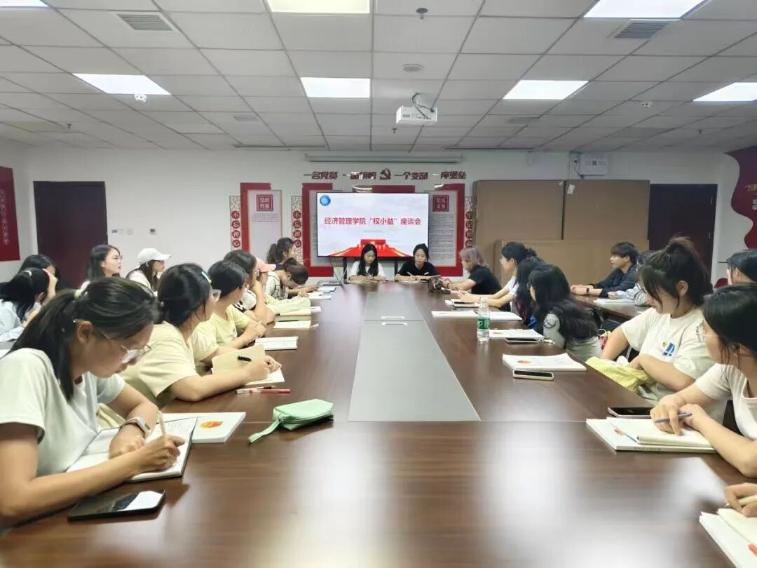 2025年10月16日,江西应用科技学院经济管理学院在综合大楼305举办“情系红宝石,权心伴你行”权小益座谈会,25级新生班级代表与学生会工作人员齐聚,共话学生权益保障。