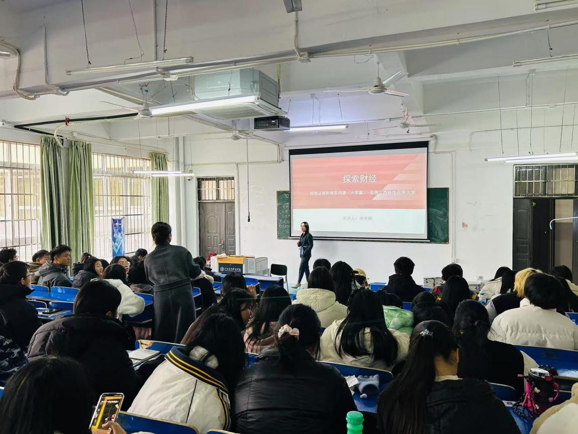 为了增进同学们对金融知识的了解,提升同学们未来的就业与职场适应能力,经济管理学院金融投资社团于12月17日下午在三达楼阶梯六教室举办了一场关于金融知识及反诈骗的专题讲座。我院有幸邀请到了国投证券江西分公司党支部纪律检查委员余雅娜和国投证券南昌金环路营业部负责人付莎开展讲座。