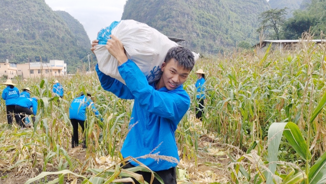 7月20日,正值玉米收获季,实践团走进村民赖以增收的玉米地。田间地头,成员们戴起草帽、拿起工具,从最初的生疏笨拙到后来的熟练高效,亲手掰下的玉米很快堆成“小山”。阳光下,饱满的金黄玉米粒熠熠生辉,成员们在挥洒汗水中欢笑,在颗粒归仓中感悟“一粥一饭当思来之不易”的真谛,真切体会“民生在勤,勤则不匮”的深刻哲理。