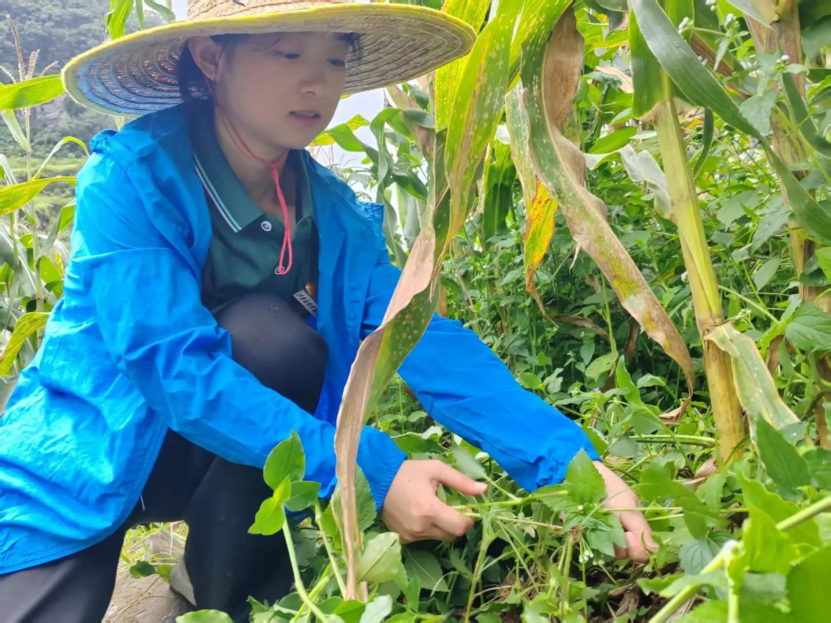山路崎岖志更坚,除草护苗助农田