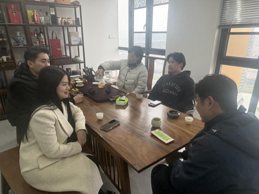 在座谈交流环节,郭文娟老师介绍了艺术设计学院视觉传达设计专业的办学定位、课程体系架构及2026版人才培养方案修订的基本思路。她表示,本次调研旨在深入了解企业对设计人才的知识、能力、素质要求,特别是随着人工智能技术发展、市场需求变化对设计岗位提出的新挑战,希望企业从用人单位视角对课程设置、实践教学、能力培养等方面提出宝贵建议。罗旭伟总经理结合企业实际用人情况,对学院人才培养工作提出了具体建议。他指出,当前设计行业对人才的需求已从单一的技术操作向“创意能力+技术素养+项目执行”复合型能力转变。他建议学院在课程设置中进一步强化设计思维训练、跨媒介应用能力以及项目全流程管理意识的培养。随后,双方还就校企协同育人、实践教学基地共建、课程案例资源开发等议题进行了深入交流。罗旭伟总经理表示,企业愿意积极参与学院人才培养过程,通过项目进课堂、设计师进校园等方式,助力学生更好地了解行业实际需求,缩短从学校到职场的适应周期。