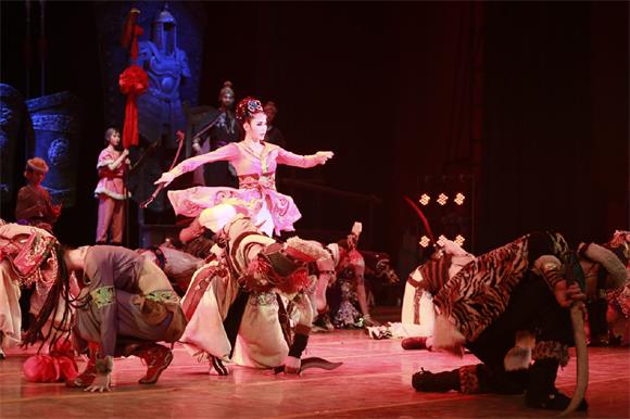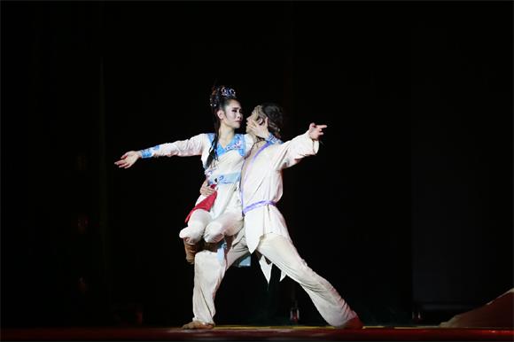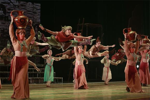 《大梦敦煌》以四幕舞剧形式呈现,极富传奇色彩。情节上,该舞剧以敦煌艺术宝库的千百年创造历史为背景,以青年画师莫高与大将军之女月牙的感情历程为线索,演绎了一段可歌可泣的爱情故事,从而将一场远在天边的敦煌大梦熔铸成中华艺术的奇葩。该舞剧的舞美设计与音乐设计也别具匠心,大气磅礴的壁画、顶天立地的佛头巨塑、蓝黄对比的灯光效果、独特新颖的服装道具、传统乐器的粗犷之音、古朴典雅的西部音乐风格,与全剧形成浑然一体的和谐之美。整场演出,给我校师生带来极大的震撼,掌声雷动、经久不息。