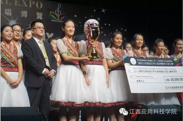 本次博览会有来自包括南非、拉脱维亚、芬兰等全球顶尖的19支合唱艺术团队参加表演,另有80多支来自世界各地的业余团队参加比赛交流。中国合唱协会常务理事、(江西)合唱基地主任、我校董事长黄玉林教授受邀与世界合唱联盟主席麦克·杰·安德森先生一同为获得总冠军的单位颁奖。